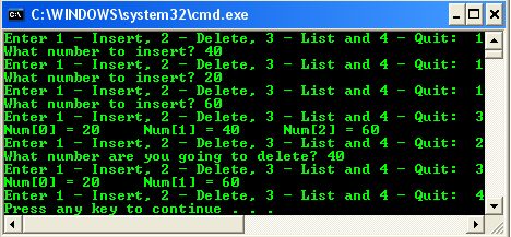 printf(“3 – List and 4 – Quit: “);
